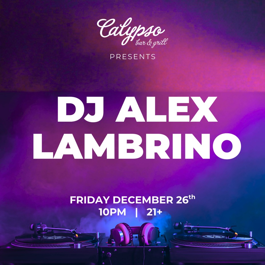 Your weekend plans start here. DJ Alex Lambrino, one of your favorite local DJs, spins live at Calypso on Friday, December 26th at 10 PM. This is a 21+ night, packed with music, drinks, and dance floor energy, you coming?