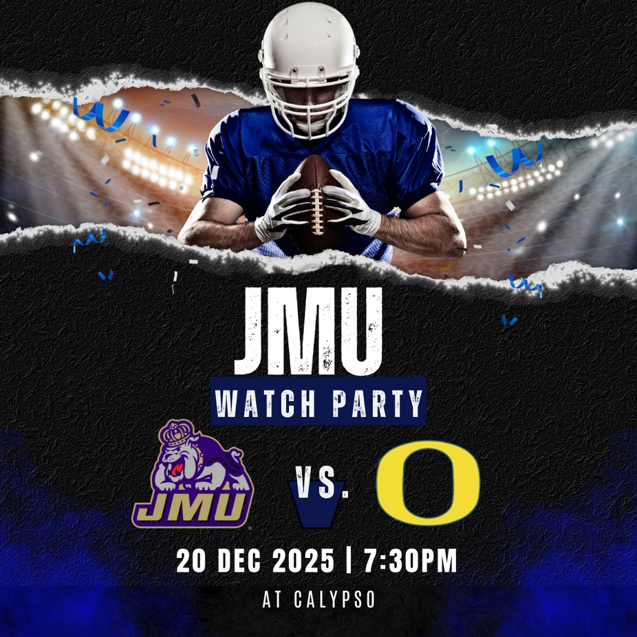 Calling all JMU alum, fans & Dukes die-hards 🟣⚡ This Saturday at 7:30PM, this is your JMU Game Day Headquarters. Big game. Bigger energy. 📺 Game on ALL screens 🔊 Sound ALL the way up 🍔 Game day football specials ALL game long Let’s pack the house and cheer the Dukes to a HUGE win over the Ducks. Go Dukes!