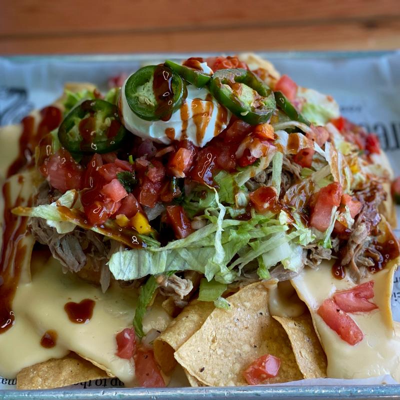 Corn tortilla chips, jack cheese, lettuce, pico de gallo, jalapeños. Add Chicken, Brisket, or Pork +$7.00